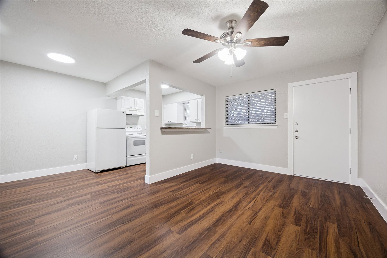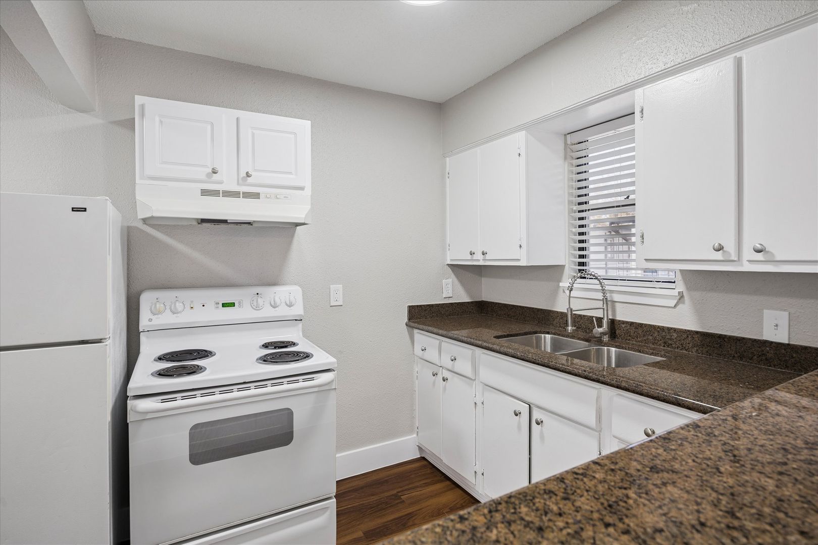 Large 1-1 in small gated community. Central air/heat, granite countertops, laminate wood floors, ceiling fans, 2" faux wood blinds, off street parking, and laundry on site.