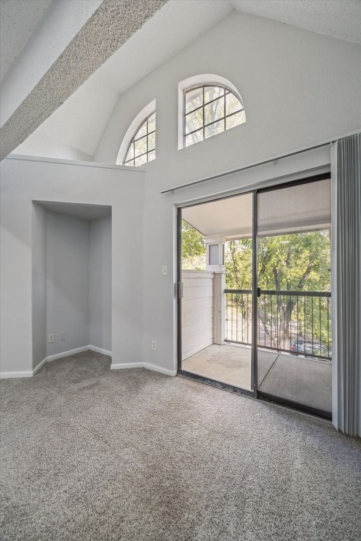Large 1-1 in small gated community. Vaulted ceiling with tons of natural light, granite countertops, washer/dryer in unit, central air/heat, patio, dog park and pool.