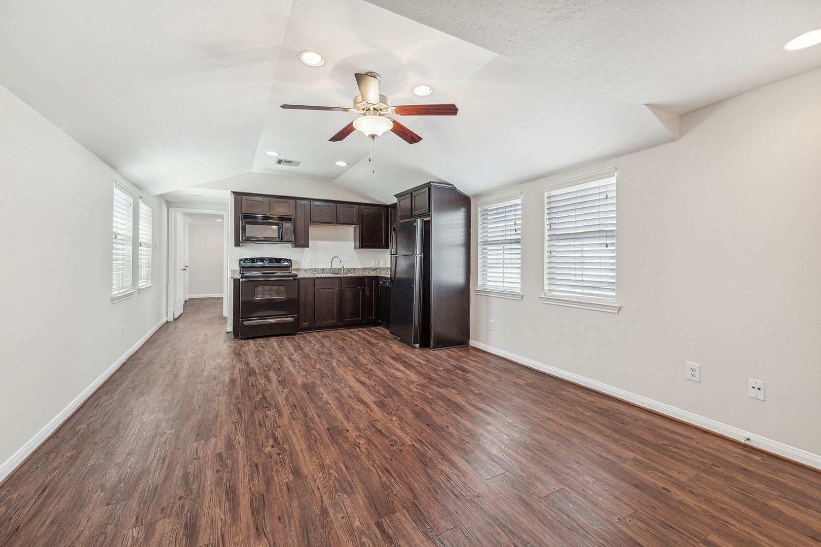 Highly sought after part of Houston Heights. Large 1-1 in small gated community. Laundry in unit!! Off street parking. Granite countertops with tons of cabinet space. Located near local eateries and minutes from Downtown.