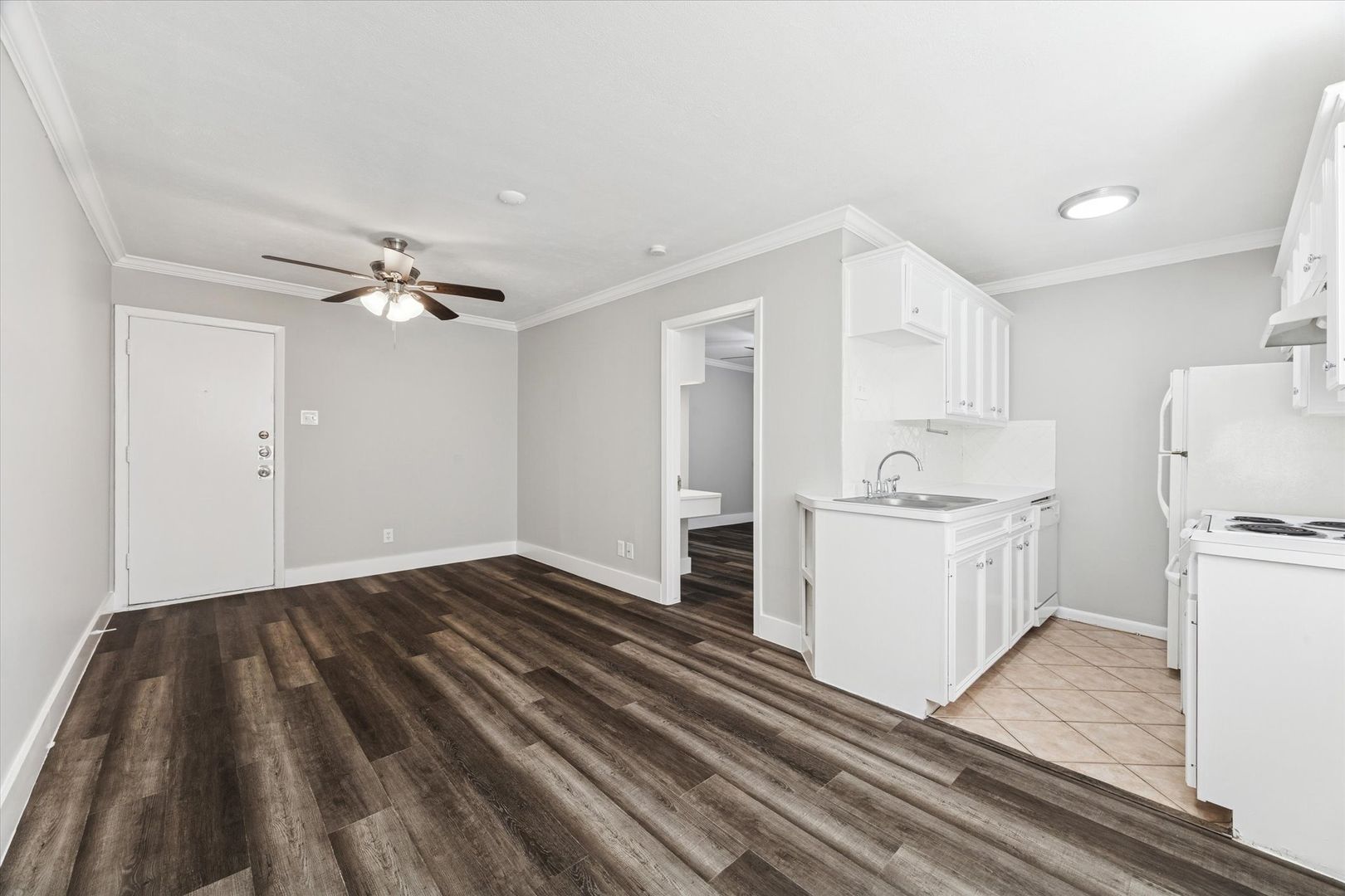 Large 1-1 in small gated community. Laminate wood floors, builtins, desk and laundry onsite.