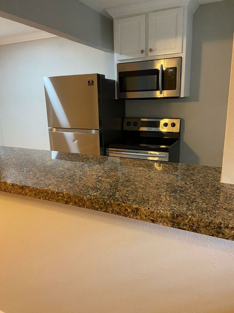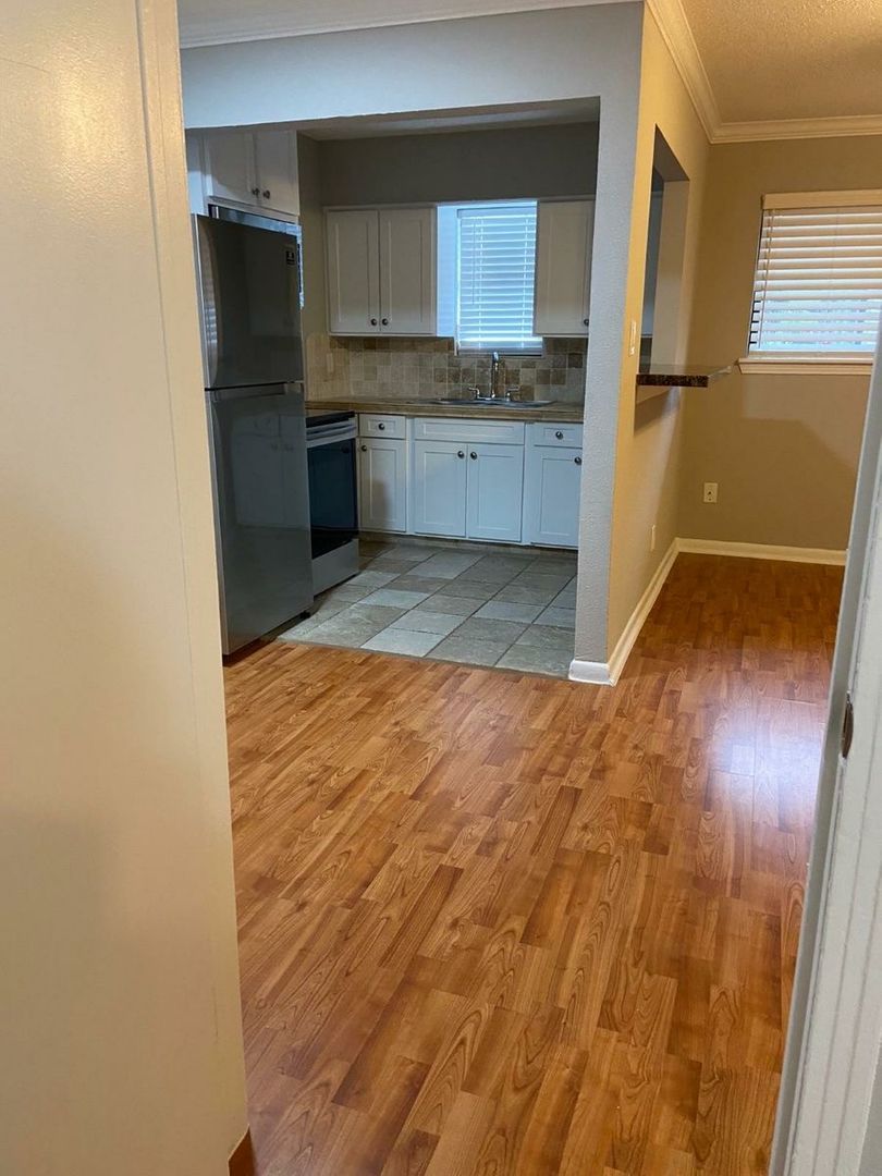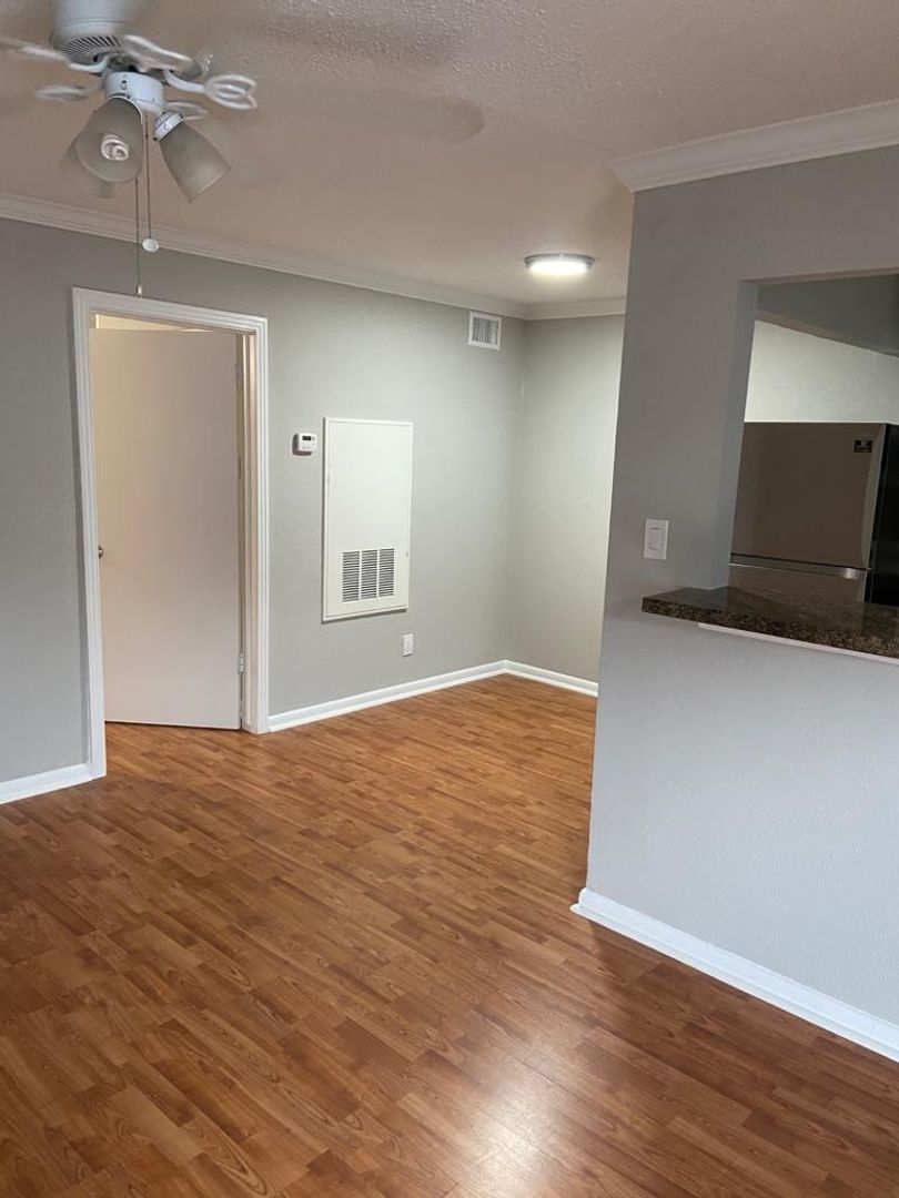 Large 1-1 in small gated community. Central air/heat, ceiling fans, laminate wood floors, off street parking and laundry onsite.