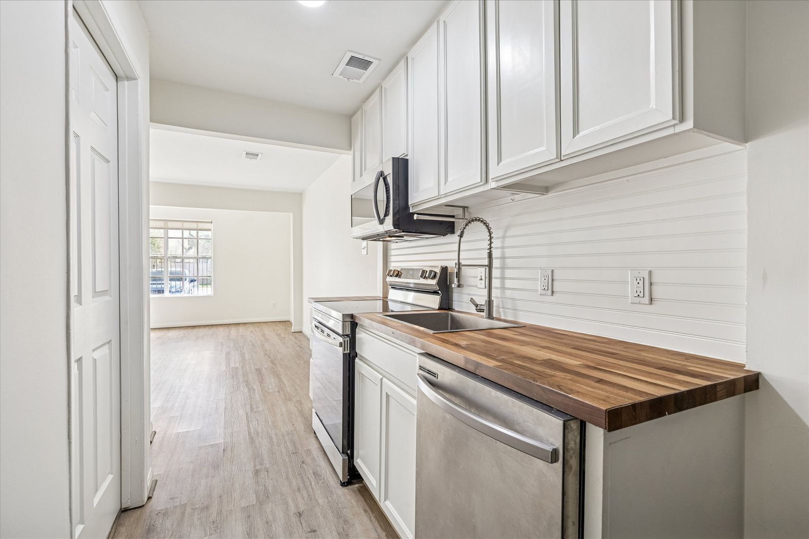NEWLY RENOVATED!!!!! Gorgeous updates including custom butcher block countertops in kitchen and bathroom, brand new cabinets in kitchen and bathroom, new stainless steel appliances including dishwasher and microwave, laminate wood floors throughout, new central air/heat, and washer and dryer included. This property is in the HIGHLY sought after part of the Heights. Local dining includes Trattoria Sofia Restaurant and Loro Restaurant. Two blocks from N. Shepherd.
